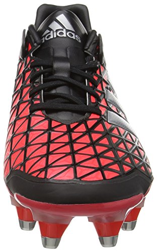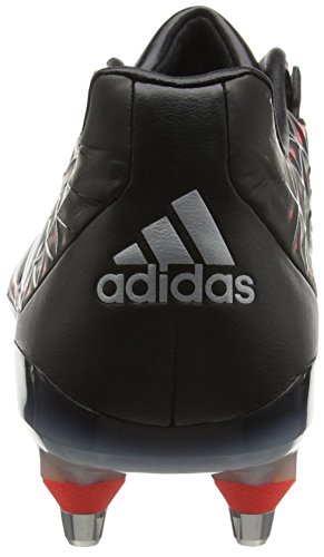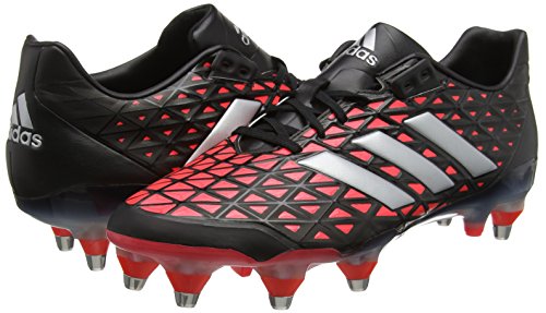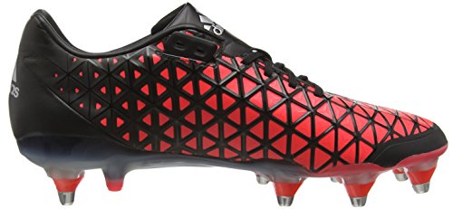 adidas New adipower Kakari SG CBLACK/SILVMT/SHORED Finetuned for the forwards, coming from the Harness The Light Pack, adidas introduce their lightest ever boots fully optimised for the scrum and defense with the adidas adipower Kakari Wide Fit SG Rugby Boots in Core Black, Silver Metallic and Shock Red. Designed sepcifically for rugby players , the adipower Kakari boots feature innovative superlight technology within that provides greater control to help you keep driving your team forward up the pitch. These rugby boots feature an adaptive lacing system that provides improved support. Agility is enhanced by the Hybrid Touch to the upper which combined with the lightweight synthetic material ensures you can accelerate into key positions. Built upon an adidas Ground Control outsole, the adipower Kakari provides dominant traction and has reinforced studs to support grip on soft ground pitches. Removable metal and moulded blades and a 10mm raised heel provide dynamic foot positioning for additional security. With a wider fit and adapted for play on soft ground surfaces, improve your control and dominate the scrum with the new adidas adipower Kakari Wide Fit SG Rugby Boots.