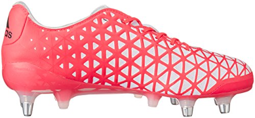 adidas New Kakari Light SG Red SHORED/CBLACK/FTWWHT Finetuned for the forwards, coming from the Harness The Light Pack, adidas introduce their lightest ever boots fully optimised for loose forwards who want that lighter less clunky boot the adidas Kakari Light Wide Fit SG Rugby Boots in Shock Red, White and Core Black has been introduced into the range as the replacment for the popular FF80. Designed for rugby players at the heart of the action, pilfering at the breakdown, making tackles tackles and darting into key positions these Kakari Light boots feature innovative superlight technology within that provides a great balance between control and speed to help you keep driving your team forward up the pitch. These rugby boots include a cage system that provides improved support. Agility is enhanced by the ultralight synthetic upper which ensures you can accelerate into key positions. Built upon a lightweight outsole, the Kakari Light provides traction and explosive power on soft ground pitches. Removable metal and moulded studs with a 10mm raised heel provide dynamic foot positioning for additional security. With a wider fit and adapted for play on soft ground surfaces, experience amazing pace balanced with reliable support with the new adidas Kakari Light Wide Fit SG Rugby Boots.