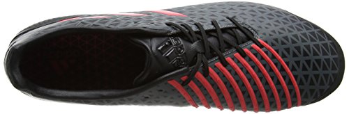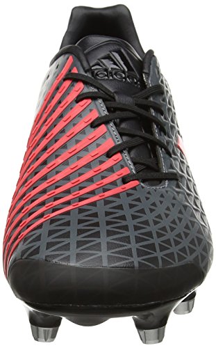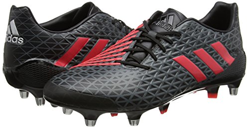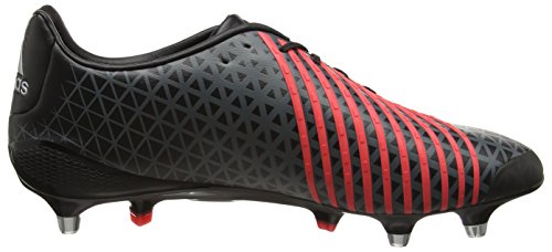adidas Predator Malice SG CBLACK/SHORED/CHSOGR Built for the backs, coming from the Harness The Light Pack, adidas introduce their lightest ever boots fully optimised for improved kicking with the adidas Predator Malice SG Rugby Boots in Core Black, Shock Red and Solid Grey the replacement for the adidas Incurza. Designed for offensive or tactical rugby players controlling the backline these Predator Malice boots feature innovative superlight technology within that provides faster acceleration, greater control and explosive changes in direction. This includes a breathable lightweight synthetic upper. These rugby boots include an asymmetric lacing system that provides a larger surface area across the top of the forefoot for more accurate striking for kickers. This is enhanced further by the Predator System Hybrid Touch to the upper which improves kicking control. Built upon an adidas Sprintframe, the predator Malice has a lightweight outsole that helps improve acceleration, and this combined with Speed Traxion removable metal and moulded bladed studs and a 10mm raised heel provide secure grip, dynamic foot positioning and explosive side steps on soft ground pitches. Adapted for play on soft ground surfaces, feel a surge of additional pace and master your kicking power and control with the new adidas Predator Malice SG Rugby Boots.