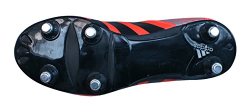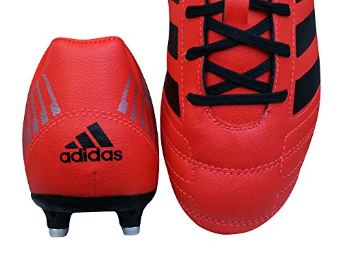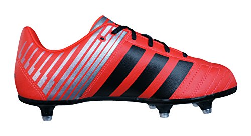 adidas Regulate Kakari SG Boys Rugby Boots – The Regulate Kakari SG Boots rugby boots made by adidas. The sturdy and tough outsole helps to provide good support and stability for scrummaging, rucking and mauling. The Regulate Kakari rugby boots are made from a synthetic leather which provides a good fit and feel. There is a 5mm heel gradient in these rugby boots which shifts the body mass forward over the centre of the body, allowing faster transition from standstill to action with substantially less strain on the lower limbs. The concept of raising the heel means that the foot is in the same position as it would be in a running shoe.