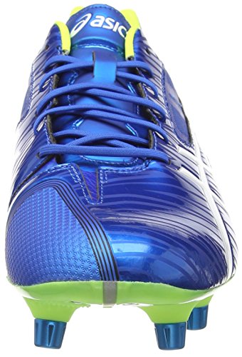When you burst through the gain line, sidestep a tackle or race for the try line, you'll say thanks to your boots for giving you speed that's lethal to your opponents. It's strong, too, with a tough outsole and added protection around the big toe so you can still fly into tackles, never giving the opposition an inch when you're on the defensive. Built for the fastest players with 4 front studs positioned for maximum velocity Gain an extra edge with a 10mm heel that helps you build up speed Comfort for 80 minutes with a lightweight and greatfitting upper Take to the field in a boot developed for the 2015 Rugby World Cup PRODUCT TECHNOLOGIES Rearfoot GEL® Cushioning System Attenuates shock during impact phase and allows for a smooth transition to midstance. Solyte® Midsole Material A lighter weight midsole compound than ASICS' standard EVA and SpEVA®. Also fetures enhanced cushioning and durability. Anti Gravel Tongue Special tongue construction that prevents debris entering the shoe. HG10mm This 10 mm difference in height between heel and forefoot offers the best biomechanical position. This protects and enhances forward motion, and reduces load on the achilles tendons, calf muscles, ham string and back. Board Lasting For stability and durability. Upper is glued to a thin fiber board, then cemented to the midsole. Seamless Construction The use of seamless materials reduces the potential for irritation and friction caused by traditional Pebax Spike Plate Optimizes flexibility while maximizing durability. Removable Studs Allows the athlete to customize spike configuration and replace worn elements.