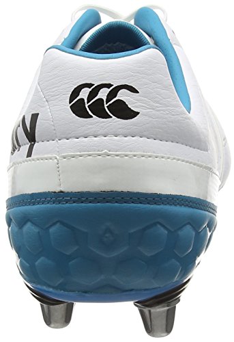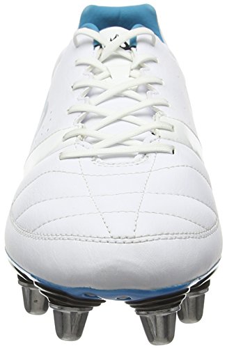 A quality boot that's flexible enough for all roles on the field, become reborn on the pitch with these versatile Canterbury Phoenix 8 Stud SG Rugby Boots in White and Atomic Blue.These casual to amateur pro level rugby boots, from rugby specialists Canterbury, features a sturdy yet light synthetic upper and has an external heel counter with a hexagon pattern to provide support around the heel when holding your position in a scrum. Built upon a reinforced soleplate, the Phoenix Club includes 8 removable aluminium studs that are adapted for soft ground pitches, providing reliable traction and grip to pull off a variety of plays in confidence, be they tackles or daring runs. For additional style points, a phoenix art design appears on the back of the heel and on the tongue.Wherever you play on the pitch, forward or back, rise like a phoenix to the challenge of every match by taking to the field with a pair of these Canterbury Phoenix Club 8 Stud SG Rugby Boots.