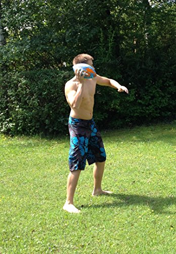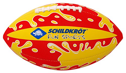 Neopren-Beach-American Football, Größe 6, trendiges neues Design (rot/gelb, orange/blau), Schildkröt Funsports Logo, unaufgeblasen im Netz.